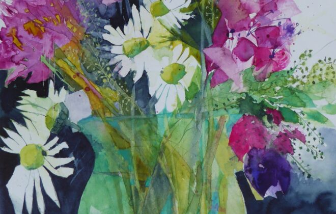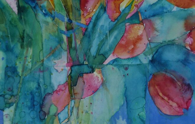 Gladioli and Fruit